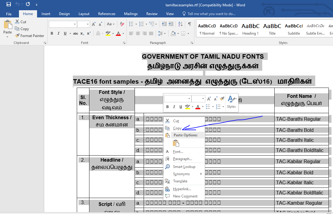 For examble take this file tamiltacesamples.rtf i open it in word. and see the document some letters are not in correct font. So I try to copy as like below